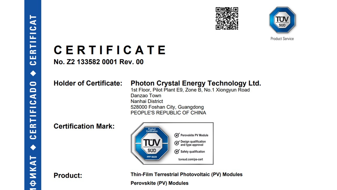 Photon Crystal Energy's Perovskite Solar Modules Pass Third-Party IEC61215 Double-Severity Damp-Heat Stability Test